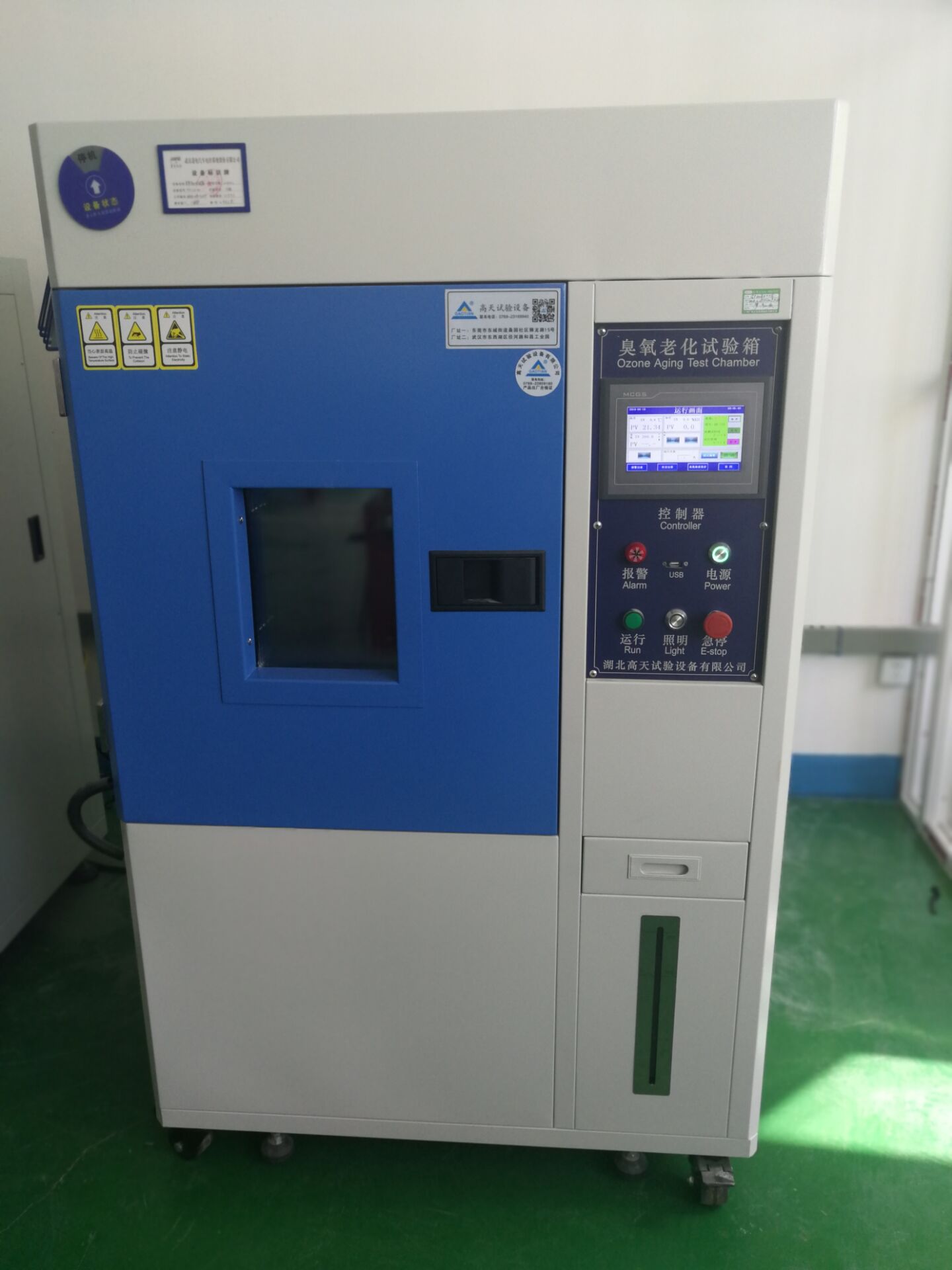 臭氧在大氣中的含量很少卻是橡膠龜裂的主要因素,臭氧老化箱模擬和強化大氣中的臭氧條件,研究臭氧對橡膠的作用規律,快速鑒定和評價橡膠抗臭氧老化性能與抗臭氧劑防護效能的方法,進而采取有效的防老化措施,以提高橡膠制品的使用壽命,參照標準:GB/T7762-2003、GB/T2951.21-2008